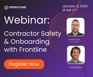 | | Sponsored | | Join us on January 11th, 2024 for our webinar "Contractor Safety and Onboarding with Frontline!" Find out how easy contractor management, safety and onboarding can be with Frontline's Contractor Safety Management tool (Frontline CSM). |