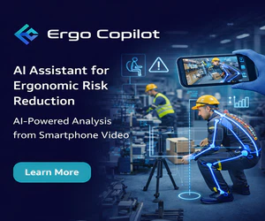 | | Sponsored | | Watch how Ergo Copilot analyzes real workplace tasks using AI powered video analysis to detect ergonomic risks and unsafe movements. See how safety teams can evaluate jobs faster, uncover hidden hazards, and prioritize improvements that help reduce injury risk and improve workplace safety. |